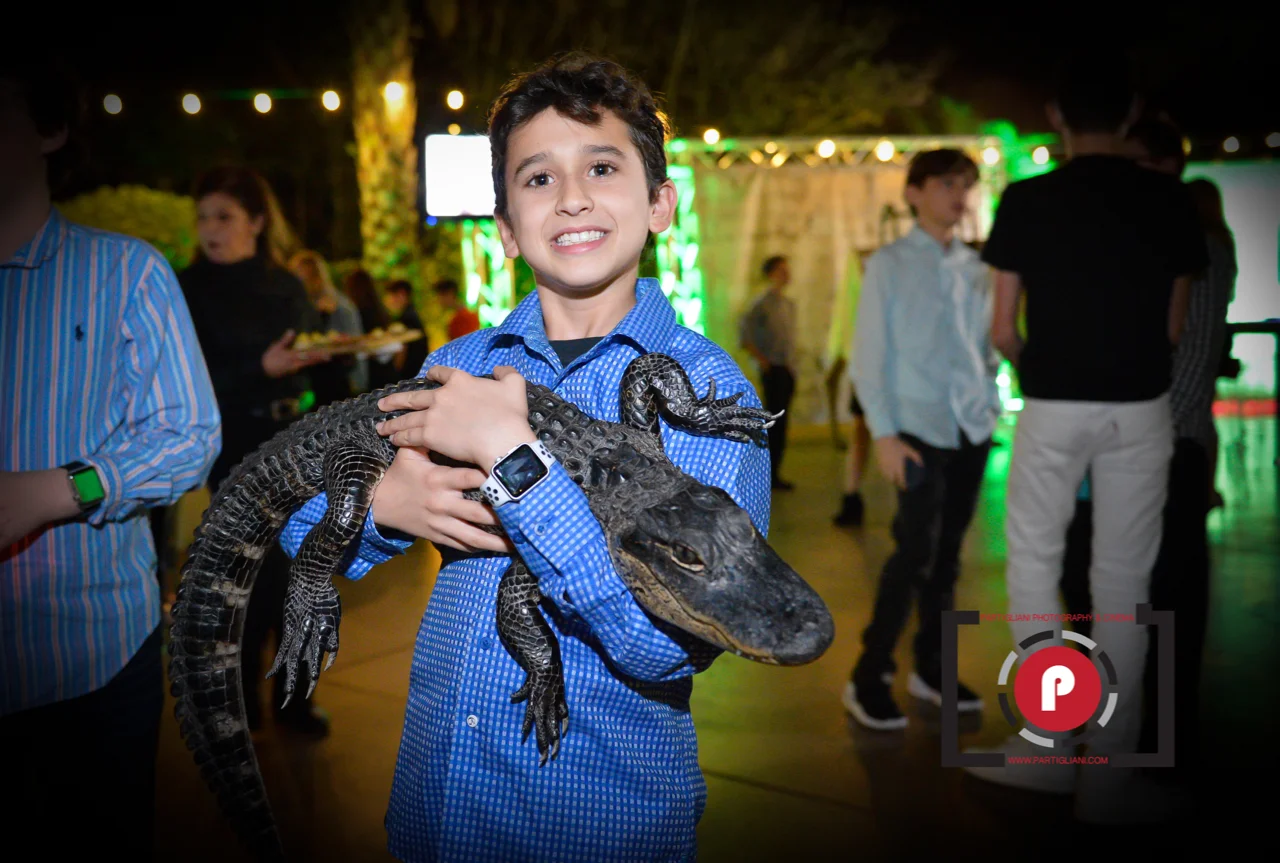 Fort Lauderdale venue, Lavan, was transformed into a neon safari experience for Zack's Bar Mitzvah last weekend, with Galaxy Production and Extreme Productions FL. Guests got to interact with exotic animals, including a lion, tiger, camel, lemurs, alligators, pythons and more, under the careful supervision of their keepers from Wild Animal World.